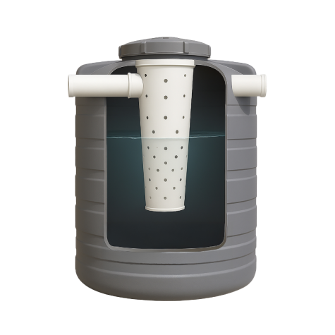 Biodigestor de 2.000 litros fabricado en polietileno, diseñado para el tratamiento anaeróbico de aguas residuales y residuos orgánicos.